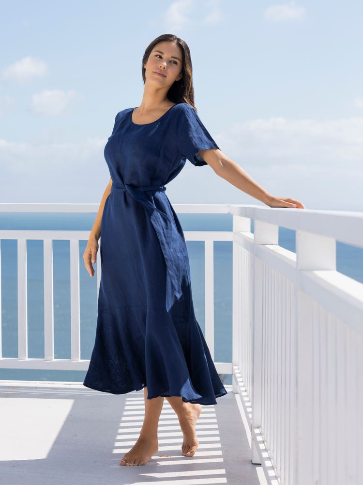 Elegantes Vintage-Midikleid aus 100 % Leinen mit modischen Merkmalen