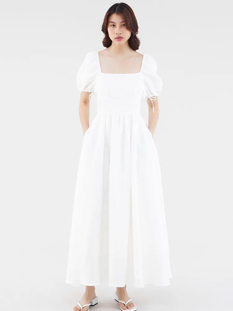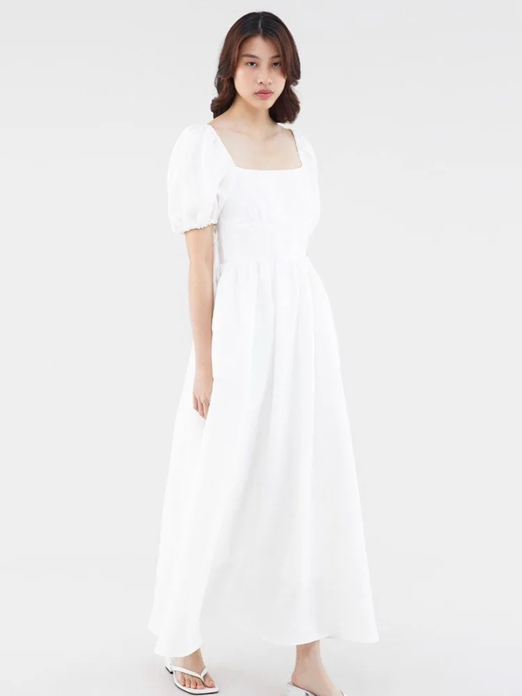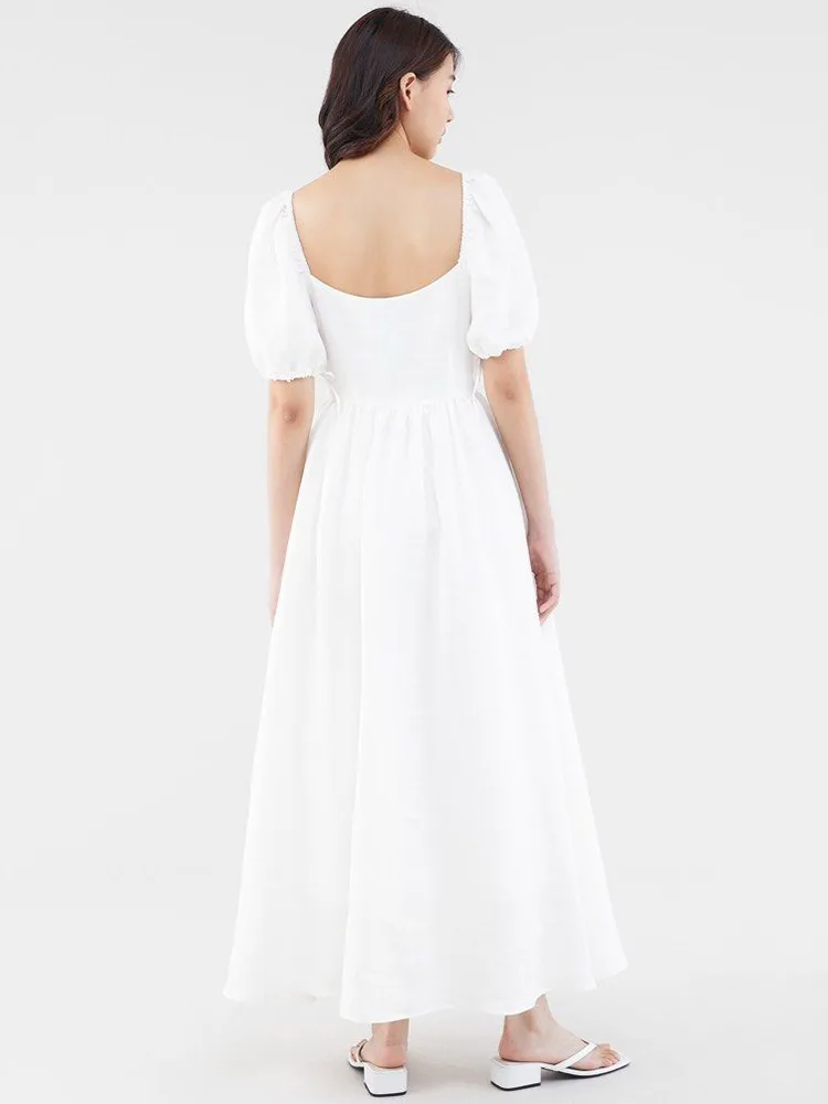 Details zum kurzärmligen Maxikleid aus Baumwollleinen