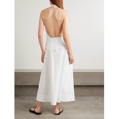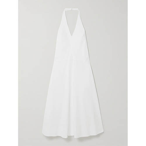 Weißes Neckholder-Maxikleid, das entspannten Chic vermittelt