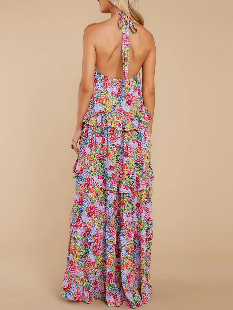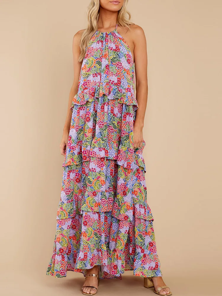 Hot-Tags: Frauen elegantes Blumendruck Baumwoll Maxikleid